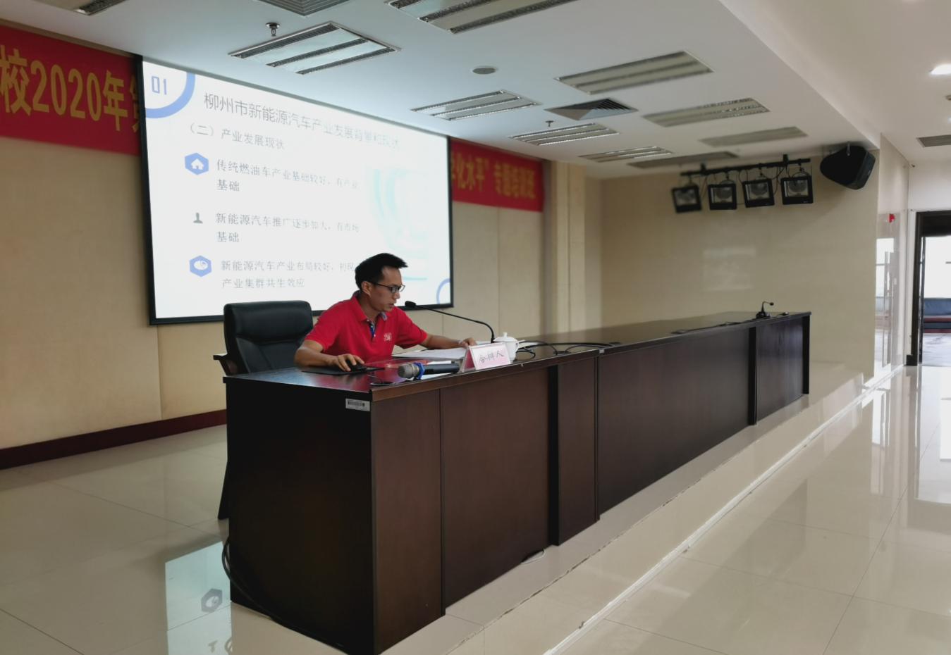 答辩会最后,张曙副教授对得分最高的第四组课题报告《柳州市新能源汽车产业链发展研究》进行了点评,他认为该课题选题精准依大局,据证双论紧相扣,理论研究出建模,实践思考有根据,精品缘来千万琢,汽车能源弥久新。